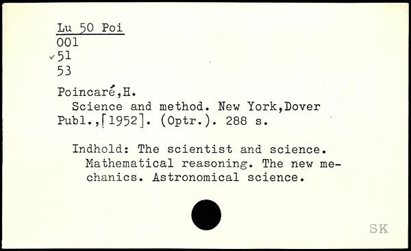 Science and method. New York,Dover Puhl.,f1952]. (Optr.).