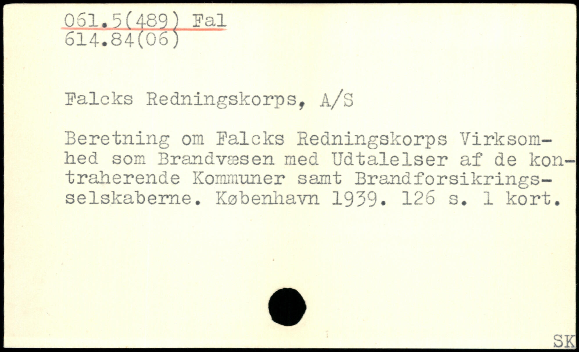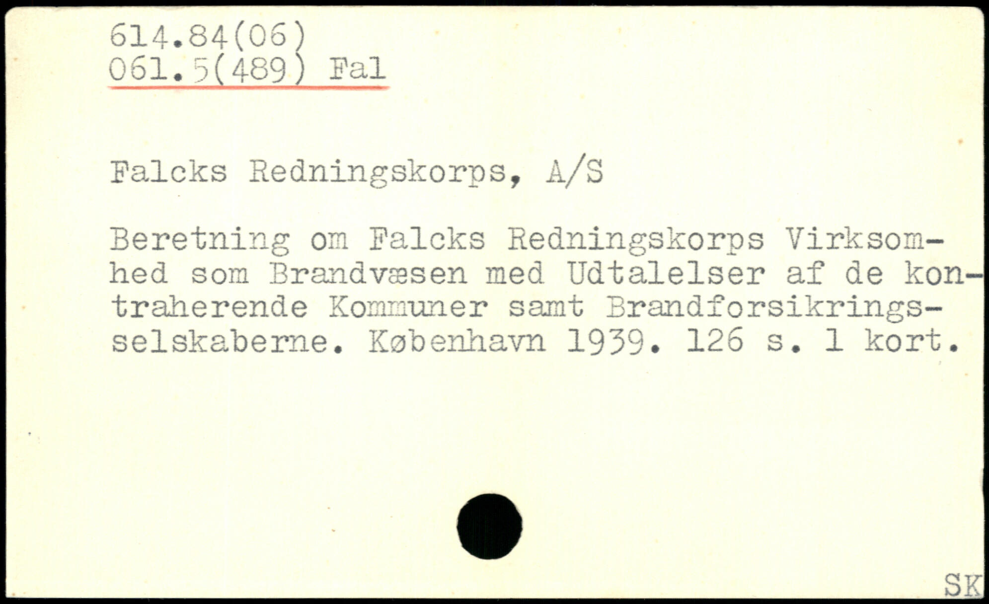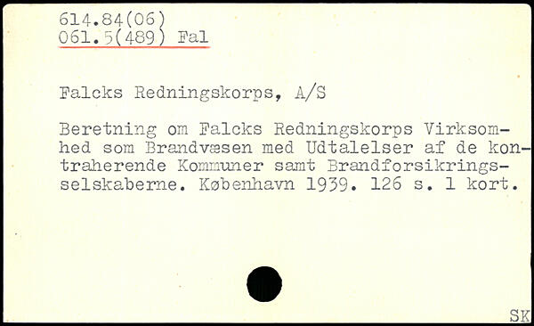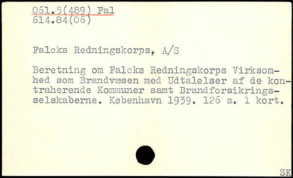 Falcks Redningskorps, A/S Beretning om Falcks Redningskorps Virksomhed som Brandvæsen med Udtalelser af de kontraherende Kommuner samt Brandforsikrings-selskaberne.