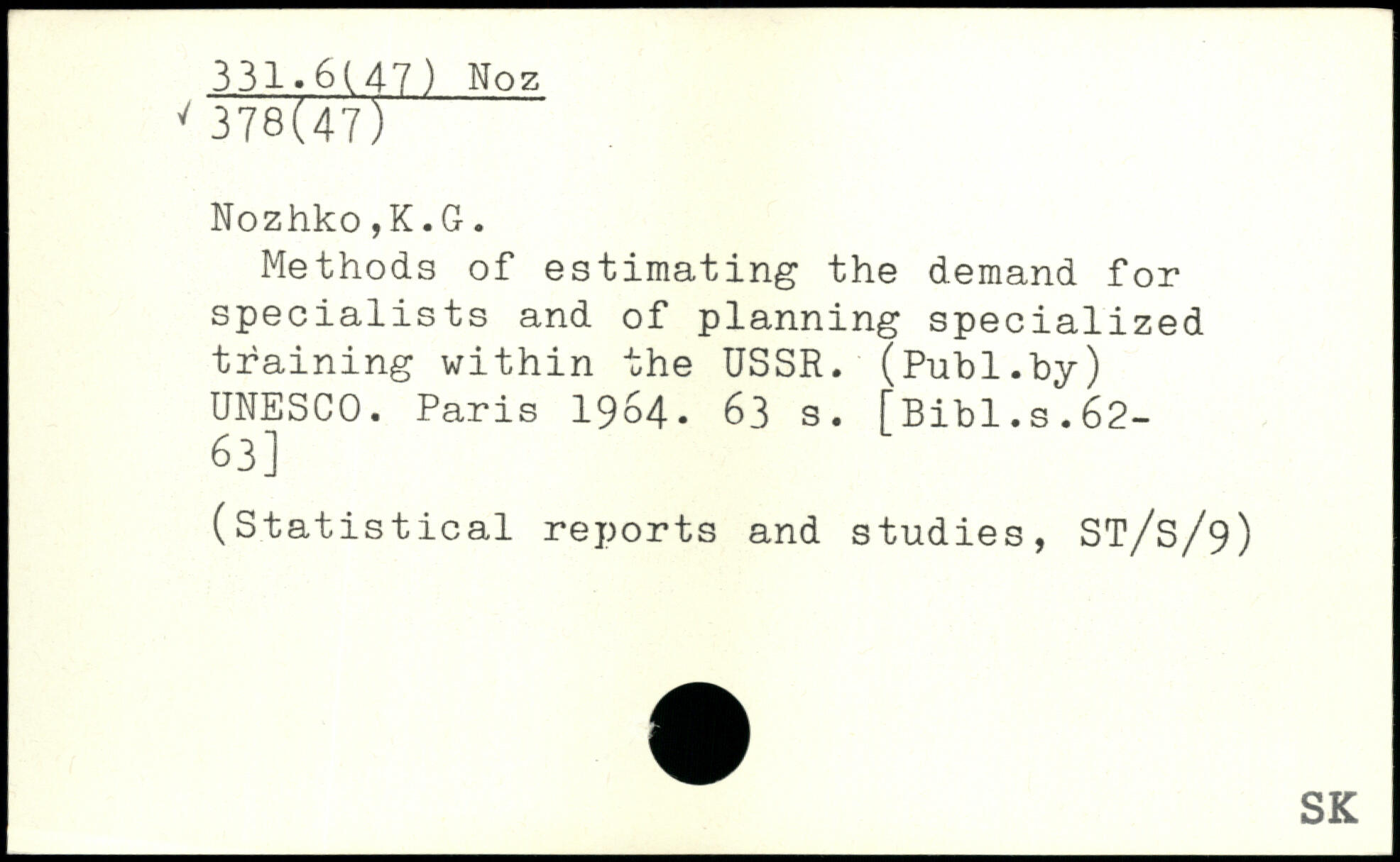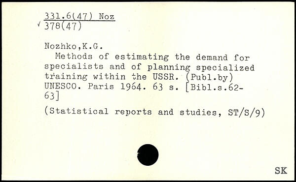 Methods of estimating the demand for specialists and of planning specialized training within the USSR. (