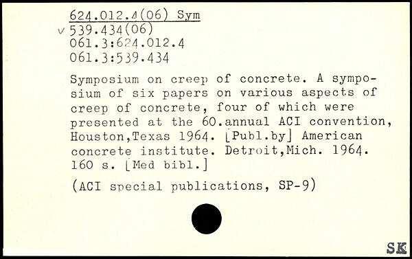 Symposium on creep of concrete. A symposium of six papers on various aspects of creep of concrete, four of which were presented at the 60.annual ACI convention, Houston ,Texas 1964- L1.byrJ American concrete institute. Detroit,Mich. 1964 -