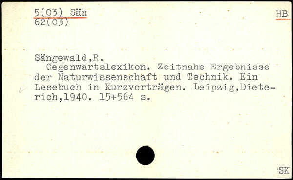 Gegenwartslexikon. Zeitnahe Ergebnisse der Naturwissenschaft und Technik. Ein Lesebuch in Kurzvorträgen.