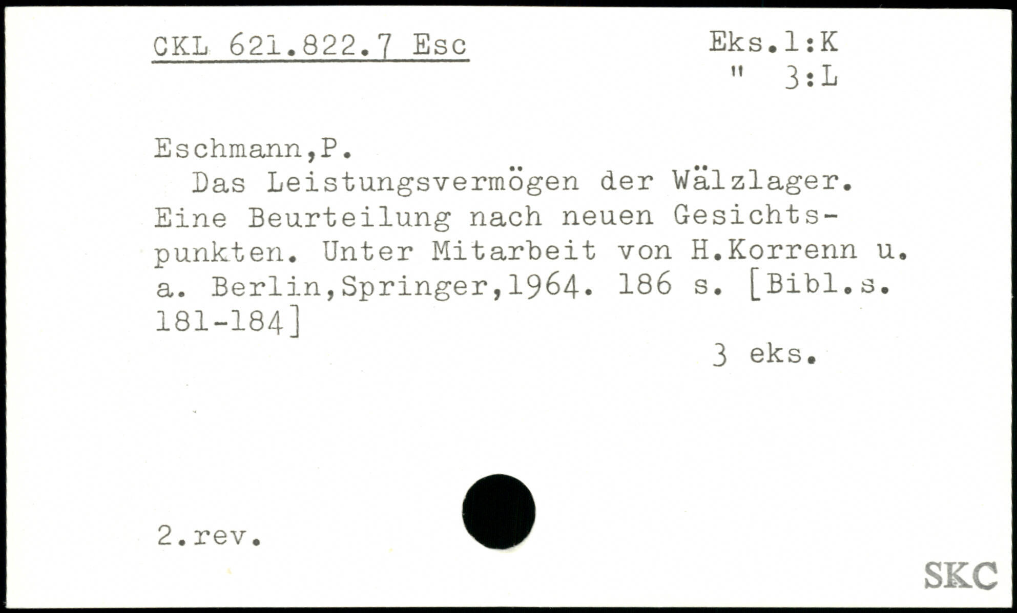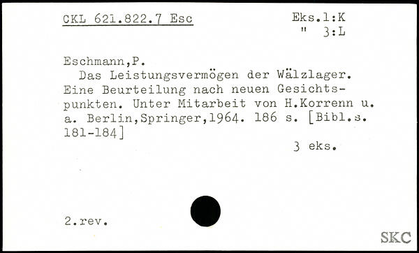 Das Leistungsvermögen der Wälzlager. Eine Beurteilung nach neuen Gesichtspunkten. Unter Mitarbeit von H.Korrenn u. a.