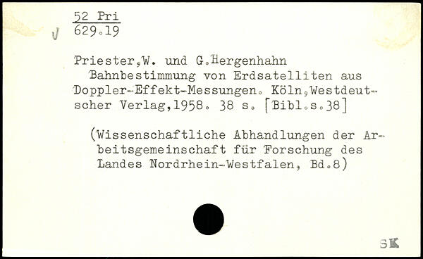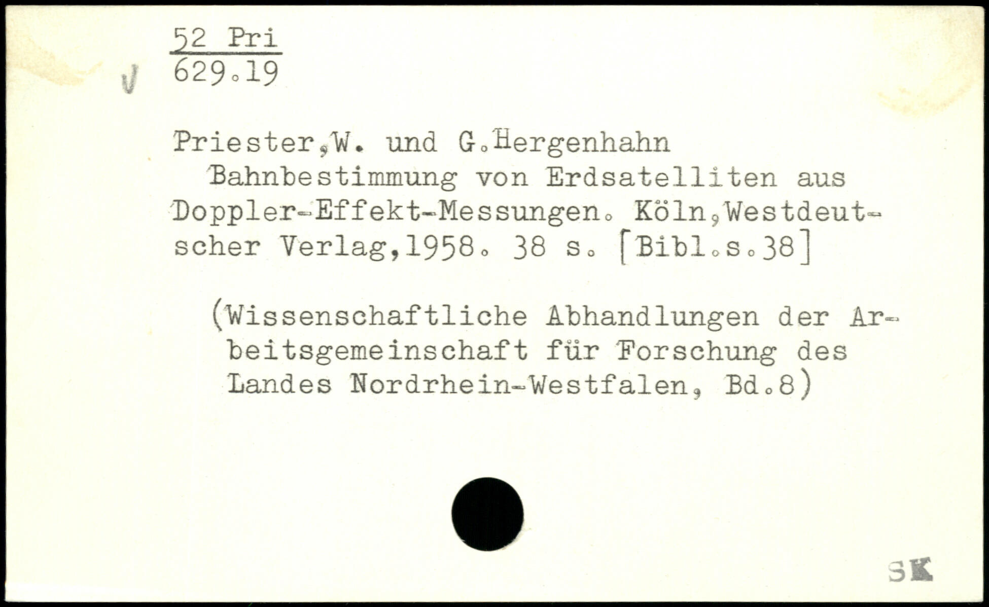Priester,W. und Gc'Hergenhahn Bahnte Stimmung von Erdsatelliten aus Doppler-Effekt-Messungen, Köln^Westdeutscher Verlag,1958.