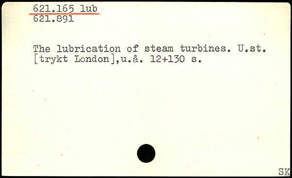 The lubrication of steam turbines. U.st. [trykt London],u.å.