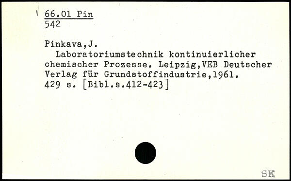 Laboratoriumstechnik kontinuierlicher chemischer Prozesse. Leipzig,VEB Deutscher Verlag für Grundstoffindustrie,1961.
