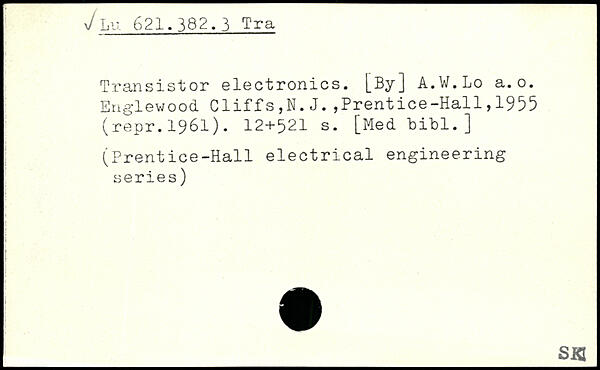 Transistor electronics. [By] A.W.Lo a.o.