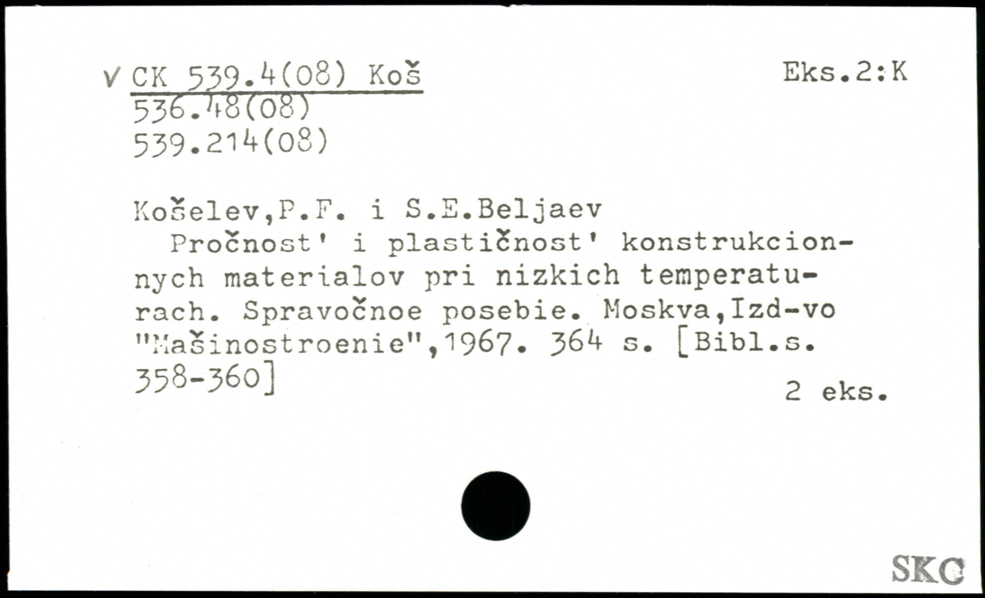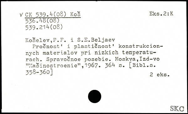 Procnost' i plastiSnost’ konstrukcion-nych materialov pri nizkich temperatu-rach. Spravocnoe posebie. Moskva,Izd-vo ”Masinostroenie",1967. 3&^ s.