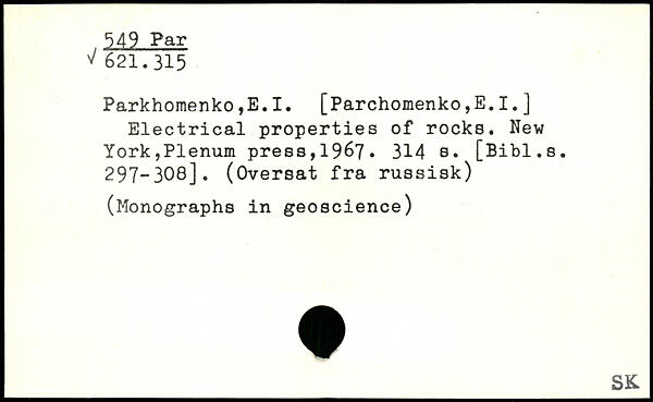 Parkhomenko,E.I. [Parchomenko,E.I.] Electrical properties of rocks.