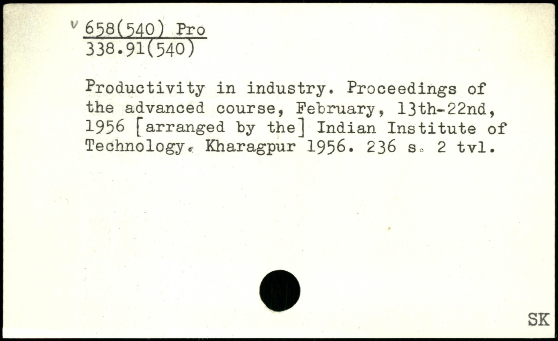 Productivity in industry. Proceedings of the advanced course, February, 13th-22nd, 1956 [arranged by the] Indian Institute of Technology,. Kharagpur 1956.