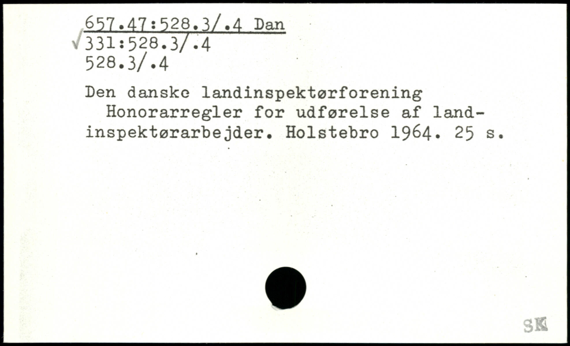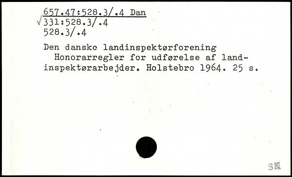 Den danske landinspektørforening Honorarregler for udførelse af land.-inspektørarbejder. Holstebro 1964.