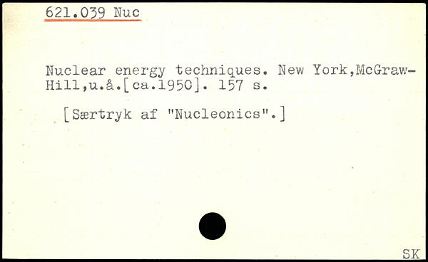 Nuclear energy techniques. New York,McGraw-Hill,u.&.[ca.1950].
