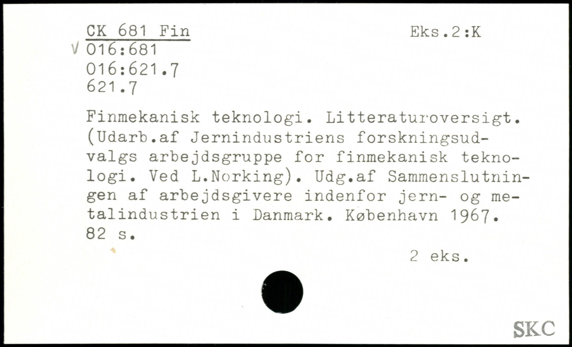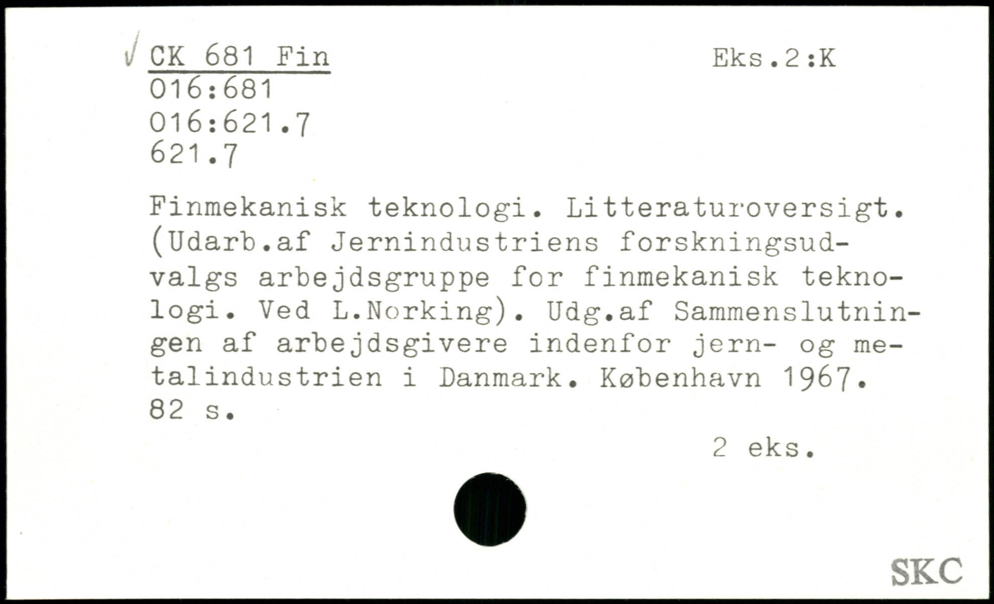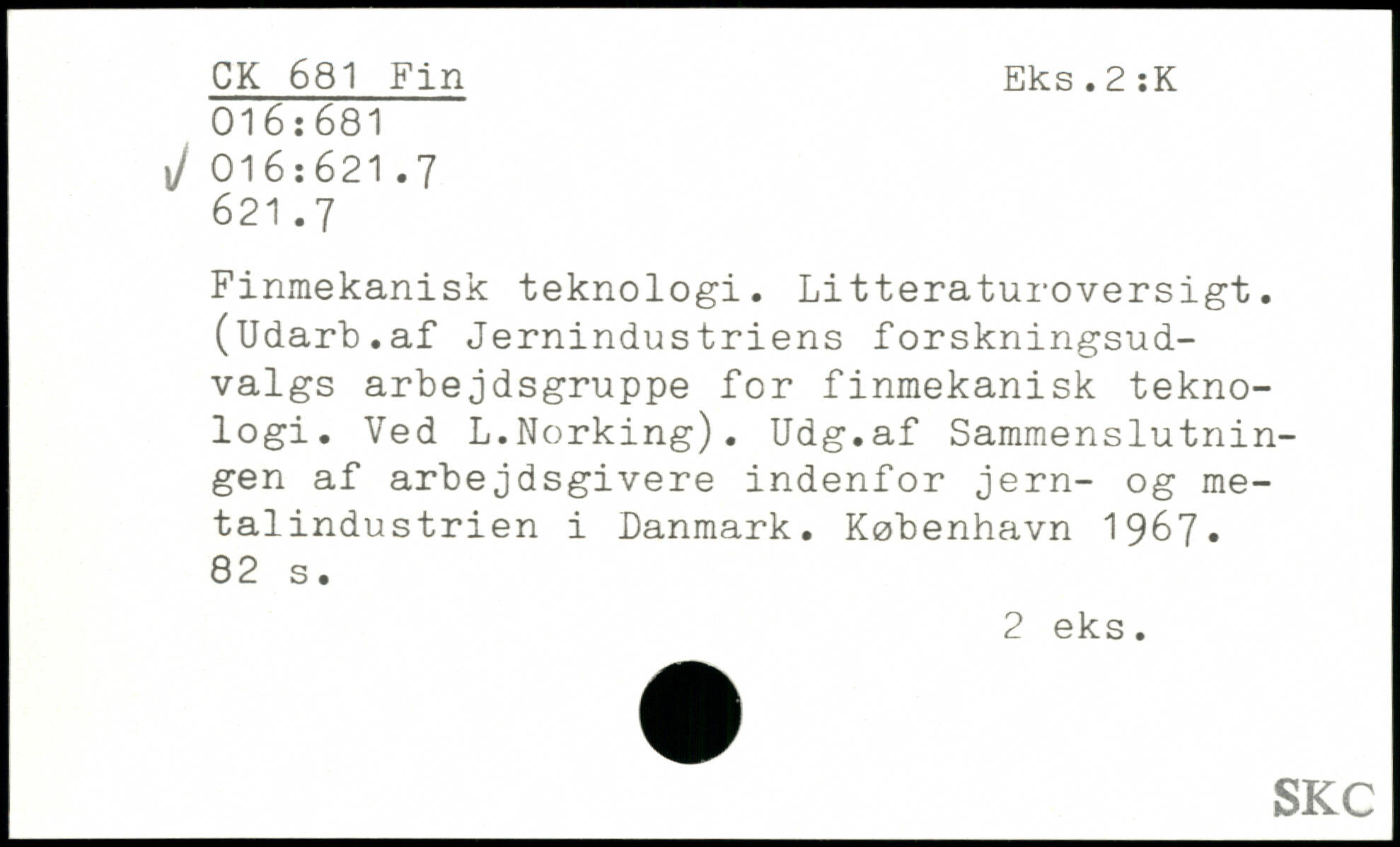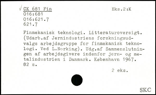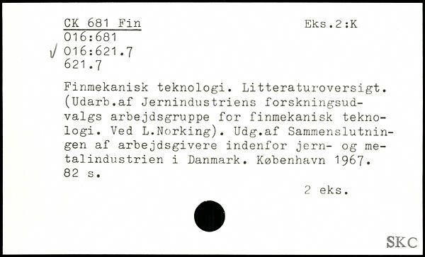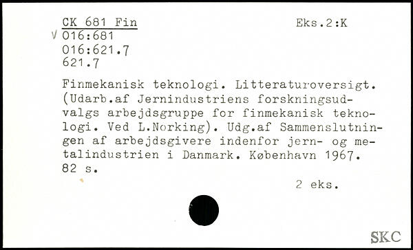 Finmekanisk teknologi. Litteraturoversigt. (Udarb.af Jernindustriens forskningsud-valgs arbejdsgruppe for finmekanisk teknologi. Ved L.Norking). Udg.af Sammenslutningen af arbejdsgivere indenfor jern- og metalindustrien i Danmark.
