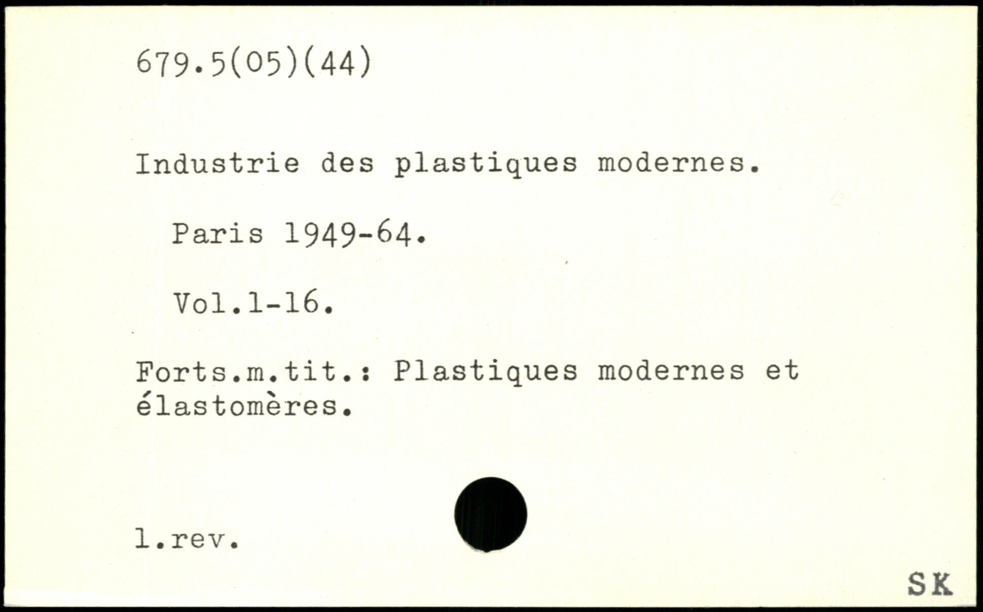 Industrie des plastiques modernes.