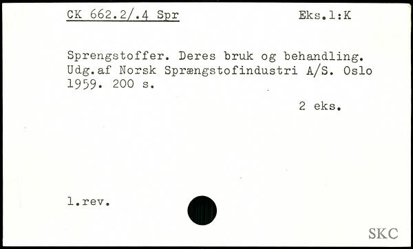 Sprengstoffer. Deres bruk og behandling. Udg.af Norsk Sprængstofindustri A/S. Oslo 1959.