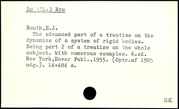 The advanced part of a treatise on the dynamics of a system of rigid bodies. Being part 2 of a treatise on the whole subject. With numerous examples.