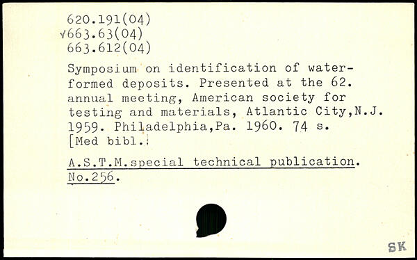 Symposium on identification of water-formed deposits. Presented at the 62. annual meeting, American society for testing and materials, Atlantic City,N.J. : 1999. Philadelphia,Pa. 1960.