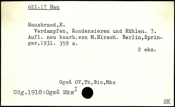 Verdampfen, Kondensieren und Kühlen. 7, Auflo neu bearb.von M0