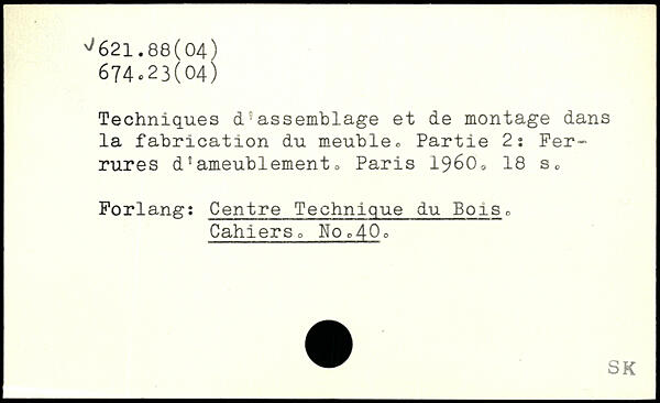 Techniques d-assemblage et de montage dans la fabrication du meuble, Partie 2î Ferrures d'ameublemento