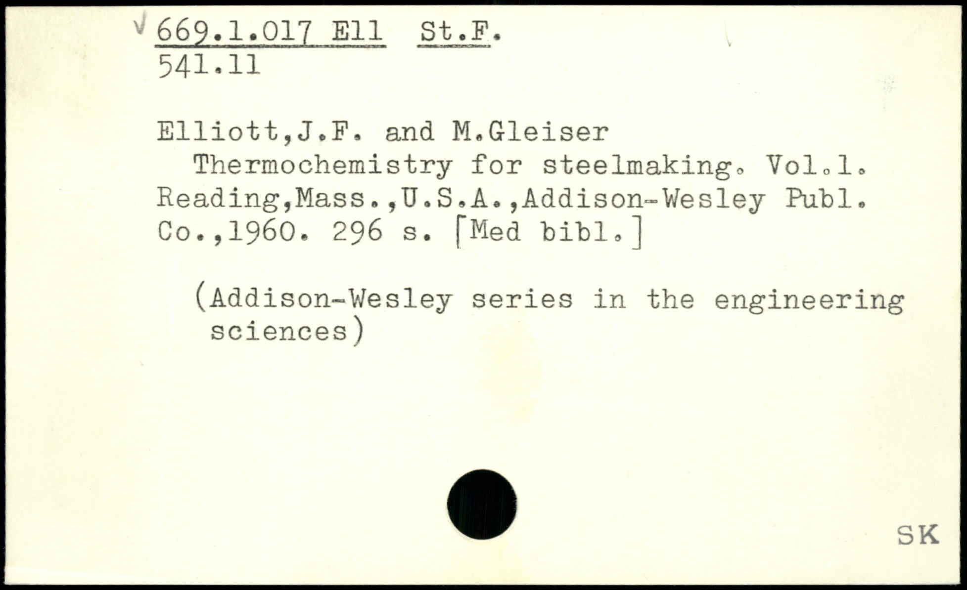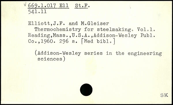 Thermochemistry for steelmaking, VoLl. Reading,Mass.,U.S,A.,Addison-Wesley Publ. Co.,1960.
