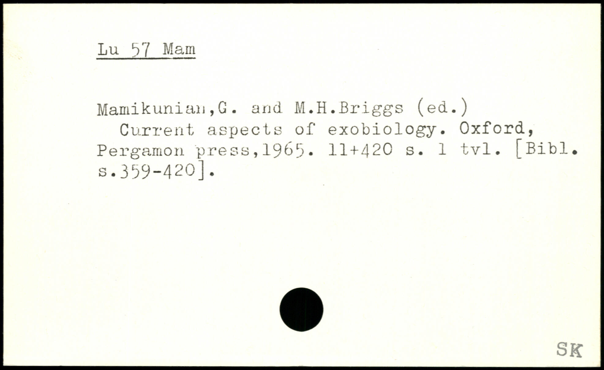Mamikuniau ,G. arid M.H.Briggs (ed.) Current aspects of exobiology.