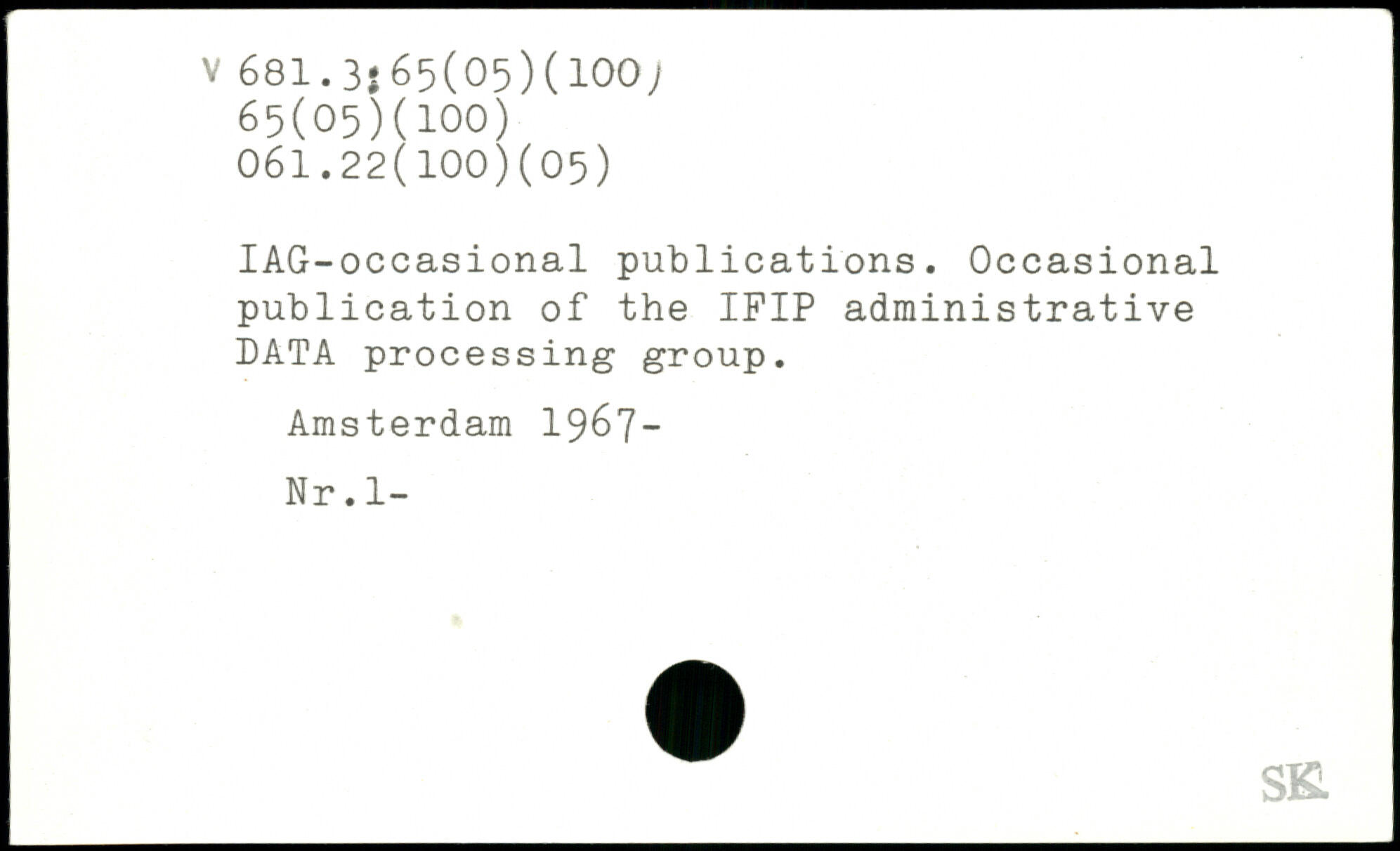 IAG-occasional publications. Occasional publication of the IFIP administrative DATA processing group. Amsterdam 196 7 — Nr. 1- SB