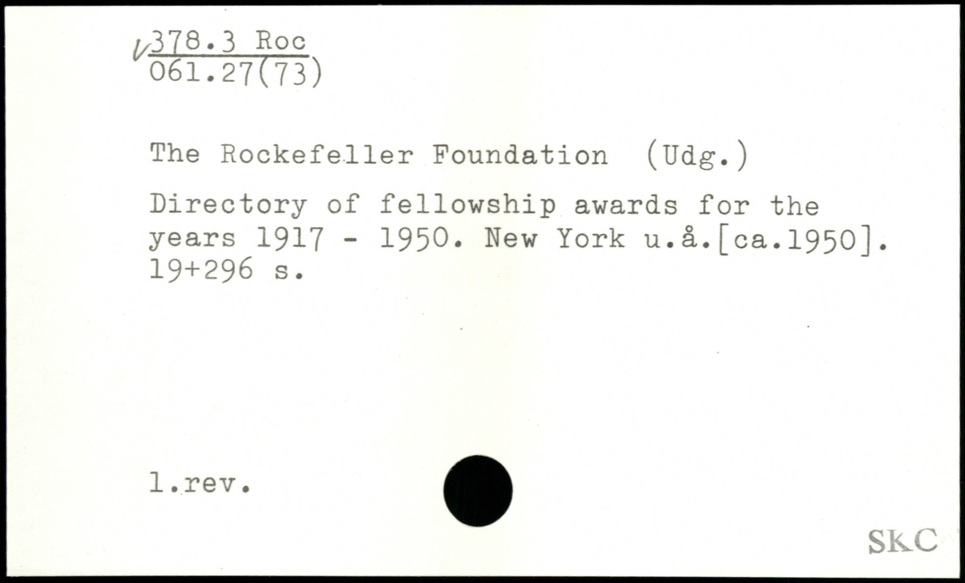 The Rockefeller Foundation (Udg.) Directory of fellowship awards for the years 1917 - 1950. New York u.d.[ca.1950].
