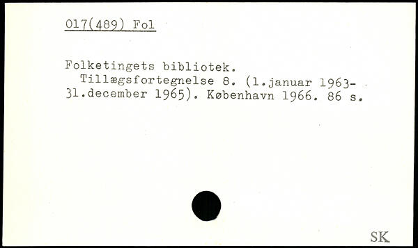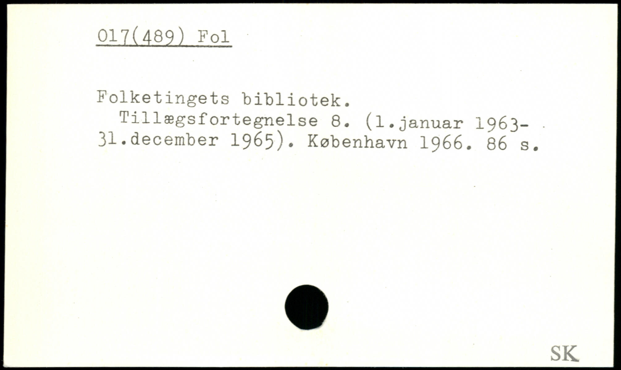 Folketingets bibliotek. Tillægsfortegnelse 8. (l.januar 1963-31.december 1965).