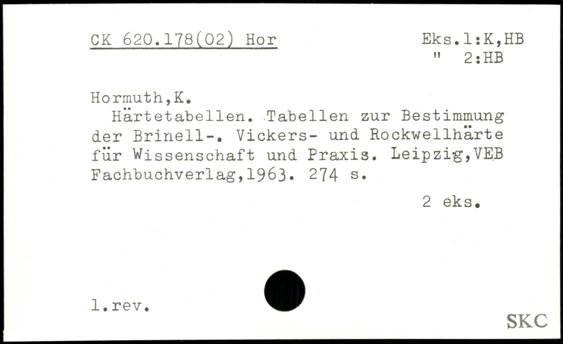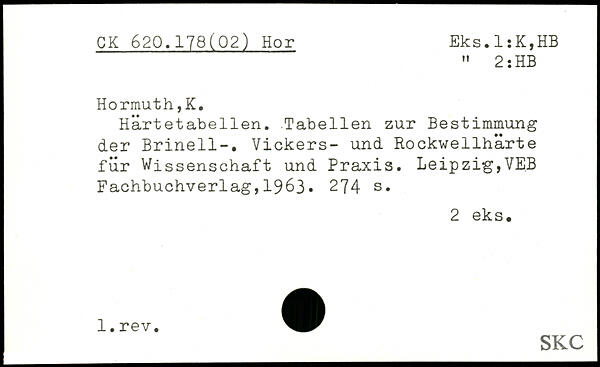 Härtetabellen. Tabellen zur Bestimmung der Brinell-, Vickers- und Rockwellhärte für Wissenschaft und Praxis.