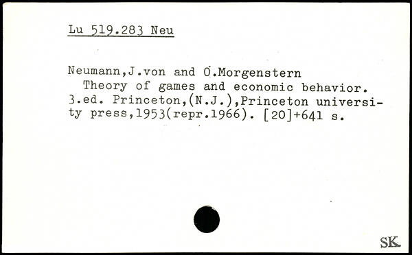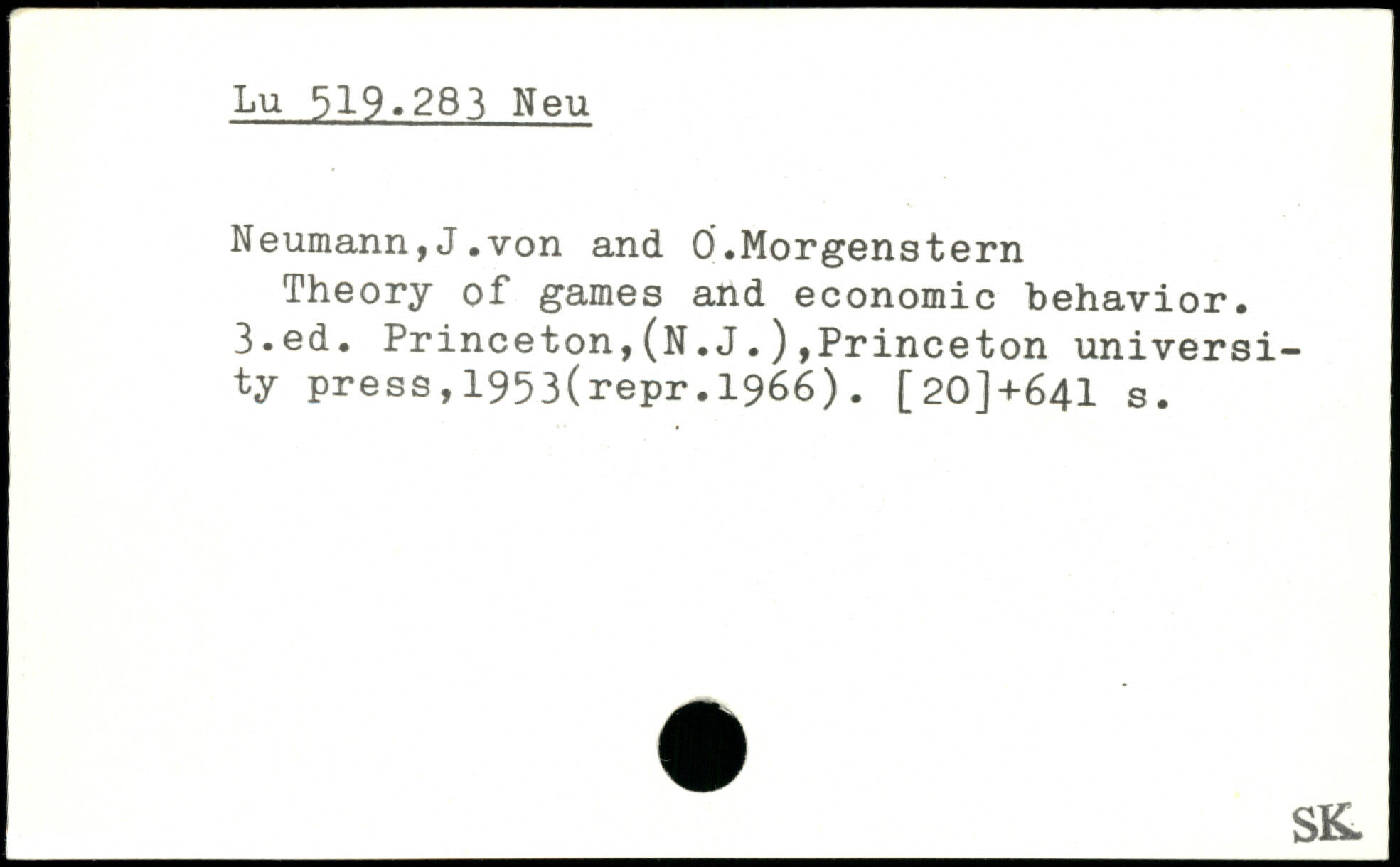 Neumann,J.von and 0.Morgenstern Theory of games and economic behavior.