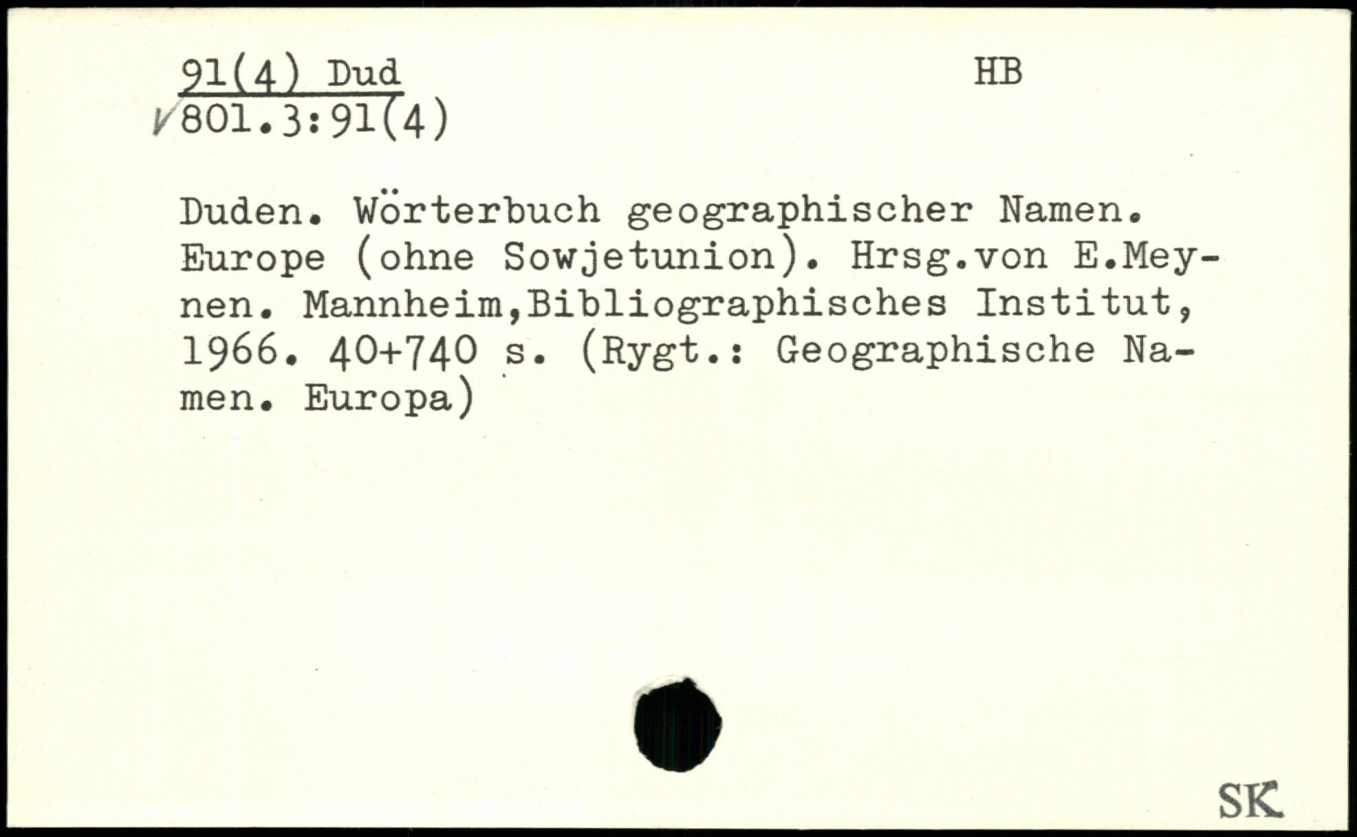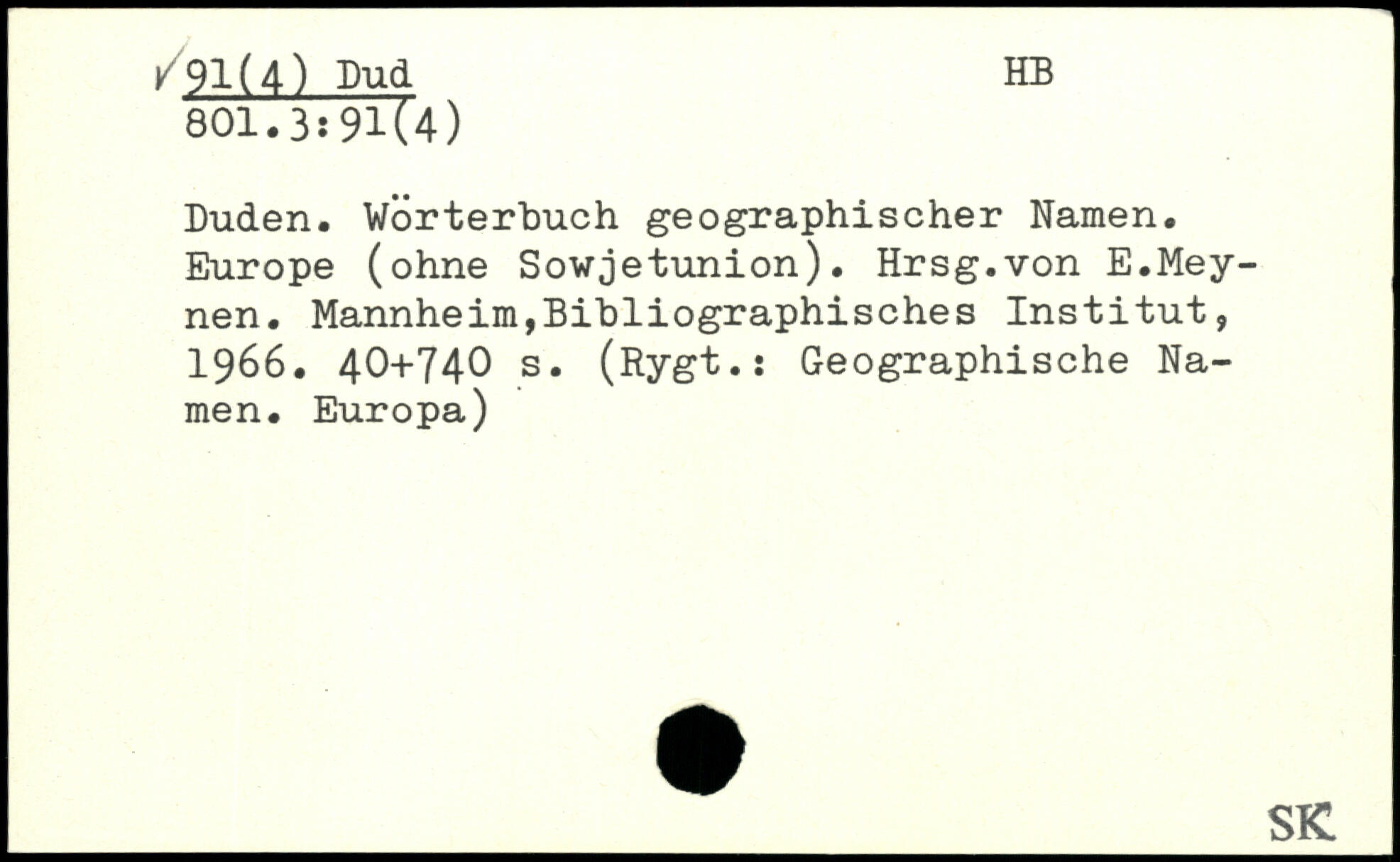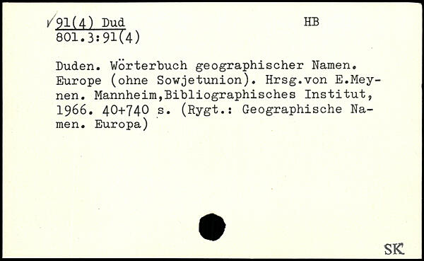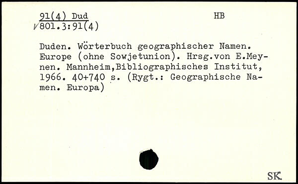 Duden. Wörterbuch geographischer Namen. Europe (ohne Sowjetunion). Hrsg.von E.Mey-nen.
