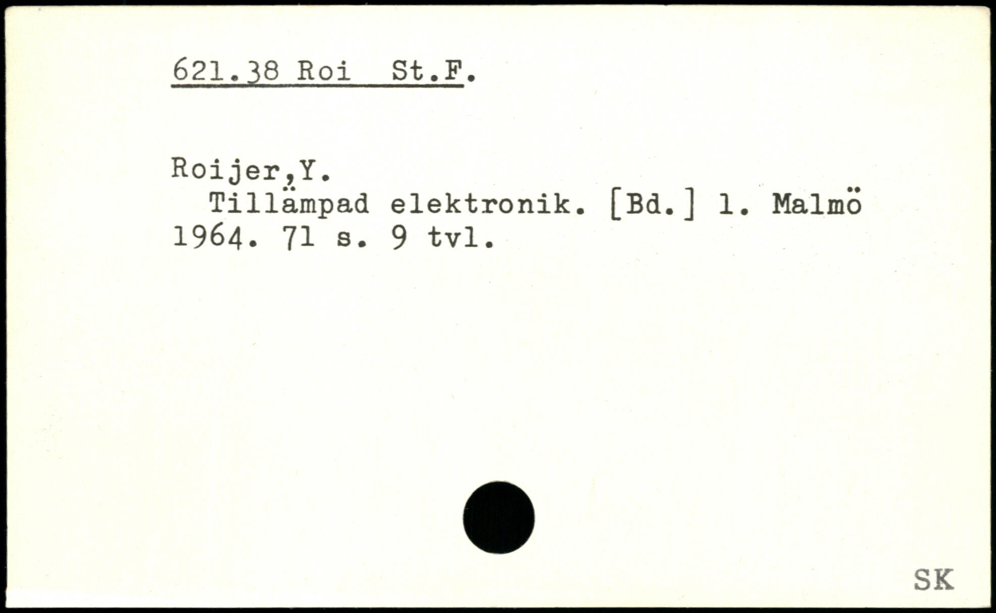 Roi jer_,Y. Tillampad elektronik. [Bd.] 1. Malmö 1964.