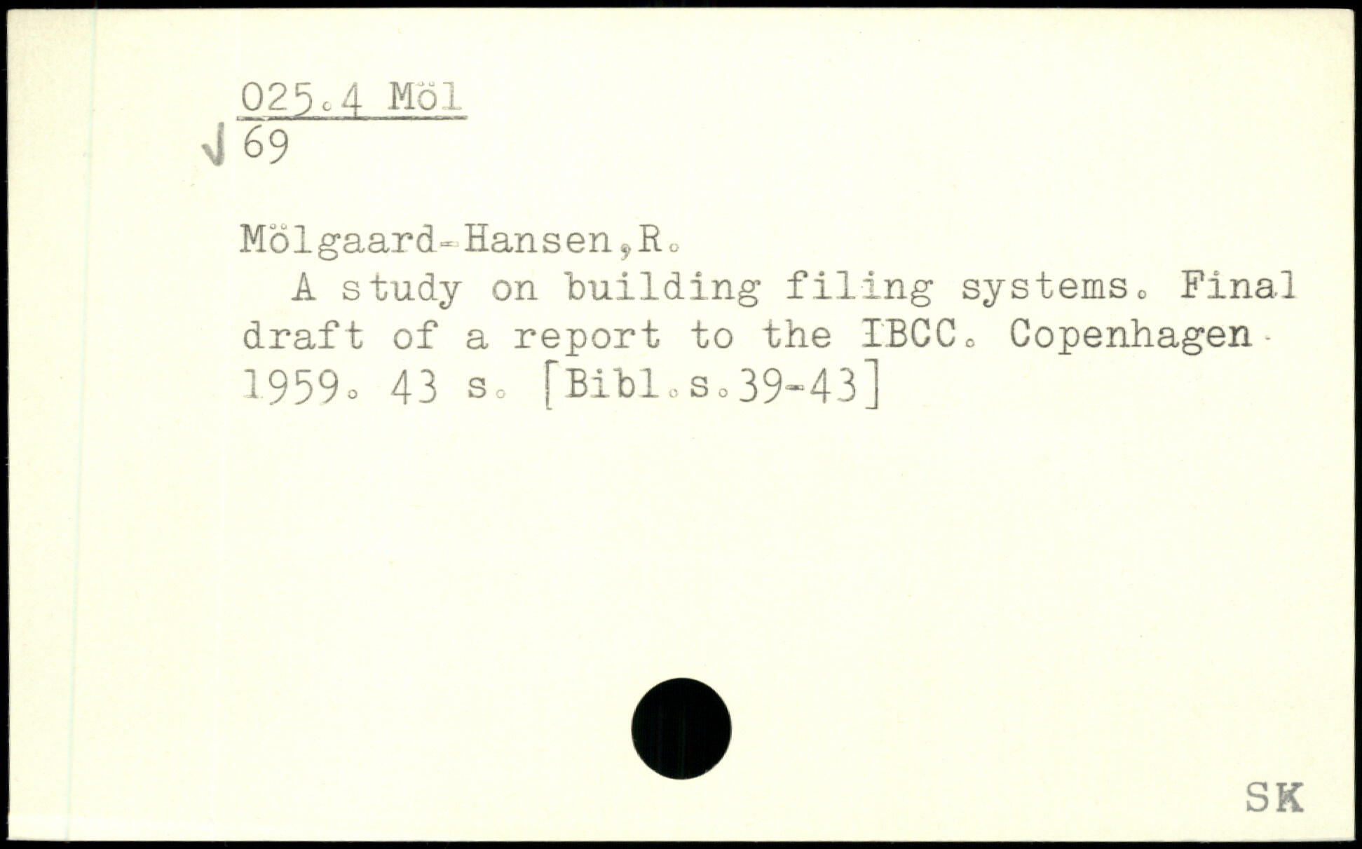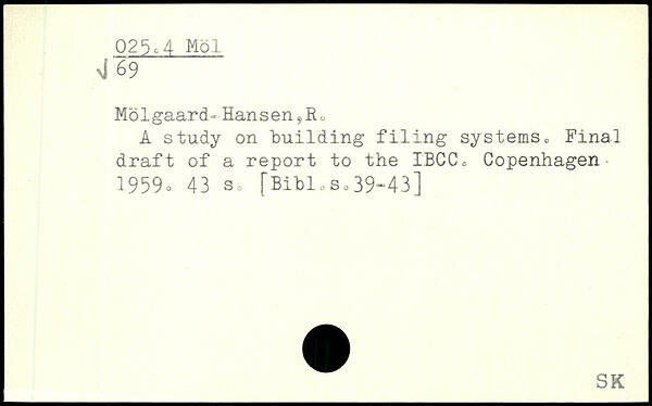 Molgaard- Hansen^Eo A study on building filing systems. Final draft of a report to the I'BCC, Copenhagen-1959.