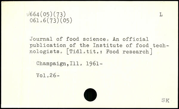 Journal of food science. An official publication of the Institute of food tech. nologists0 [Tidlotites Pood research] Champaign,111o 1961. Volo26.
