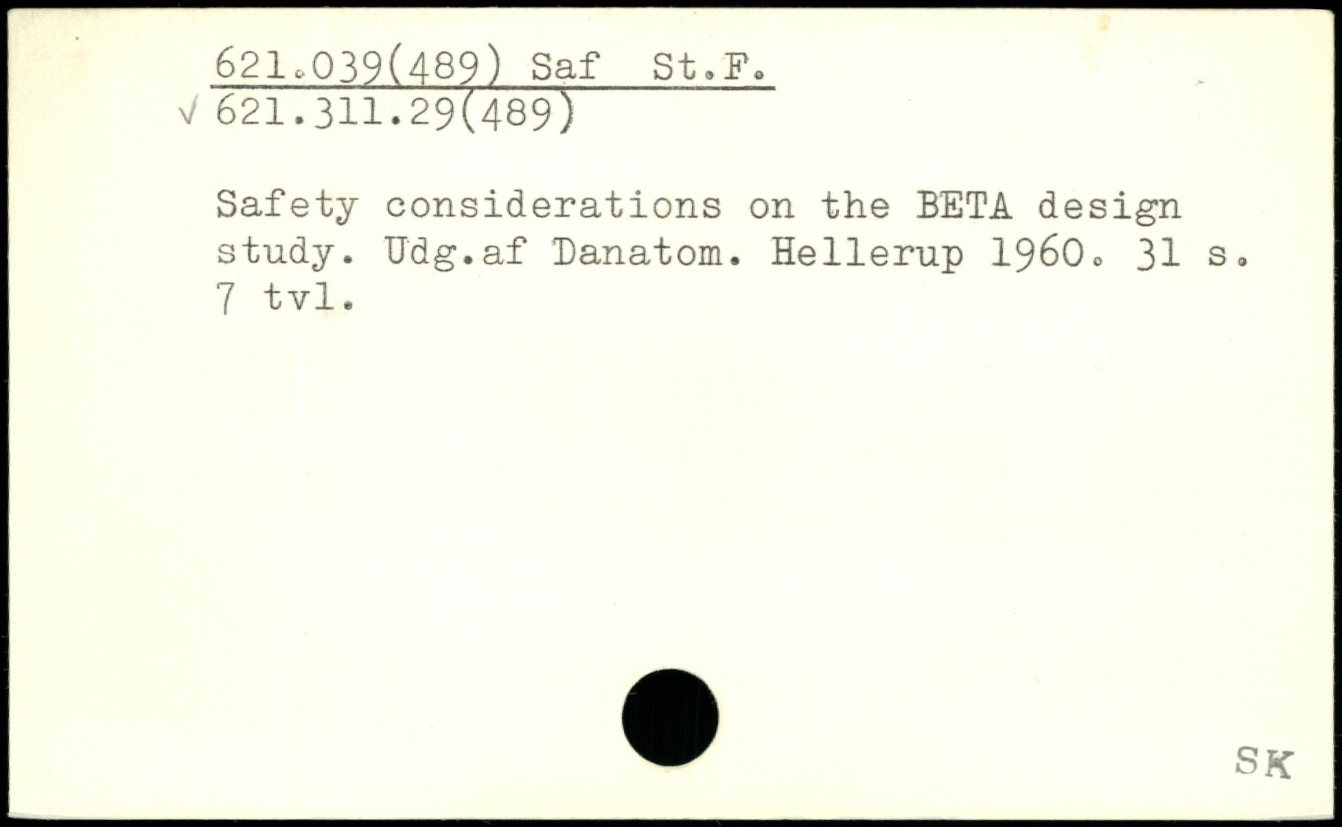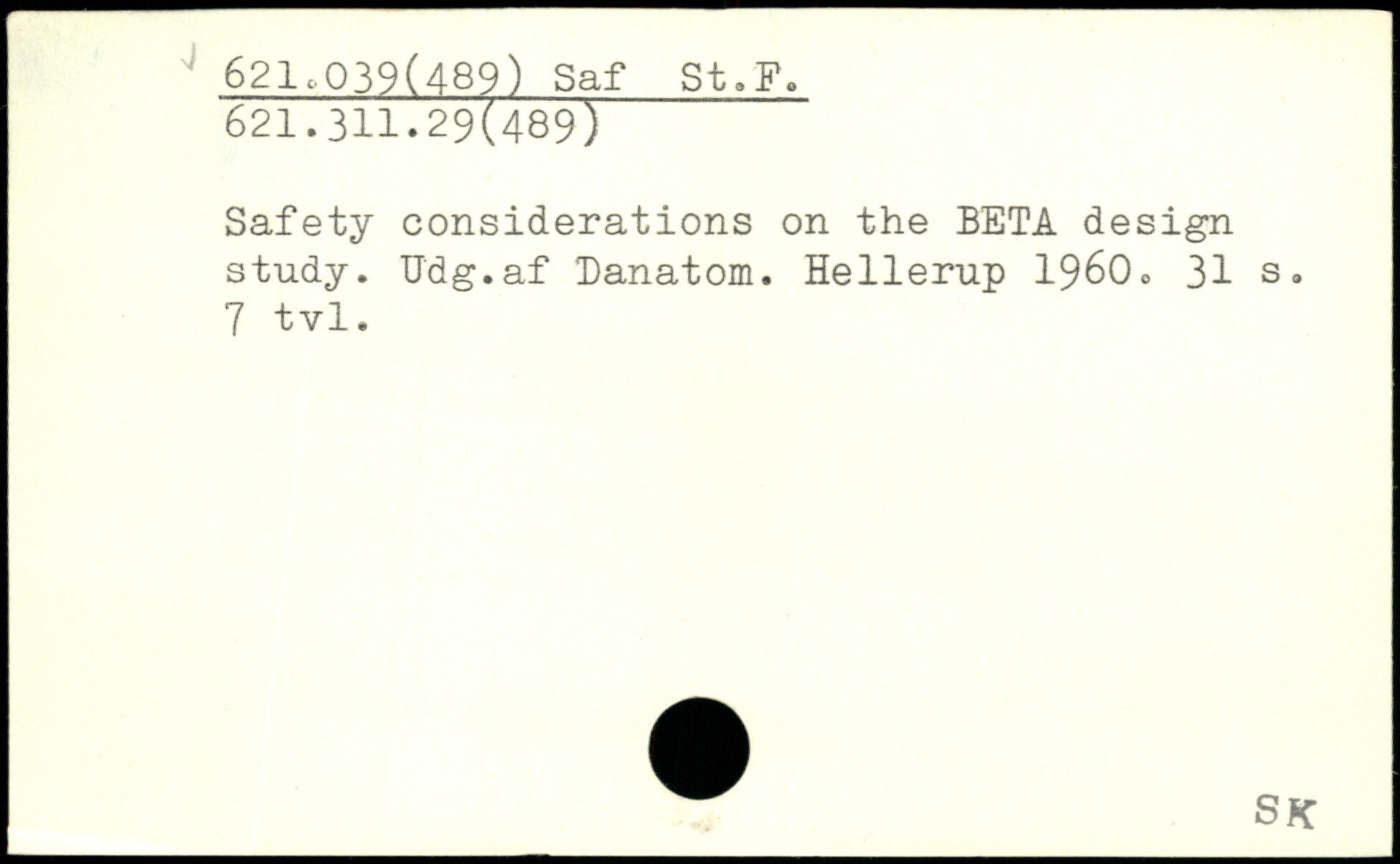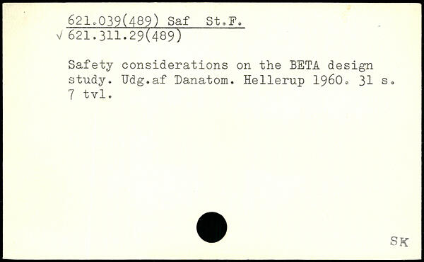 Safety considerations on the BETA design study. Udg.af Banatom. Hellerup 1960