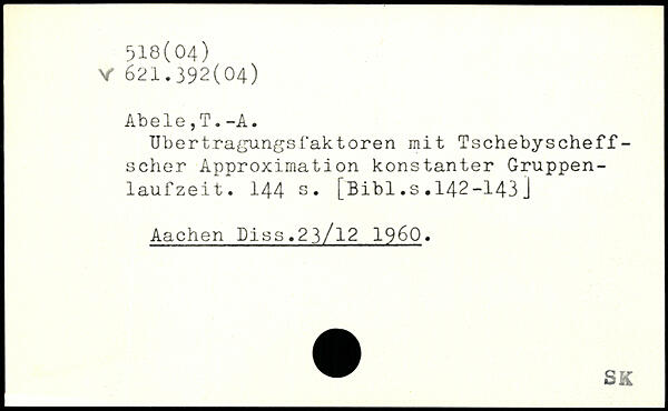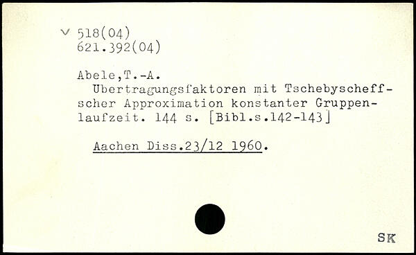 Ubertragungsfaktoren mit Tschebyscheff-scher Approximation konstanter Gruppenlaufzeit.