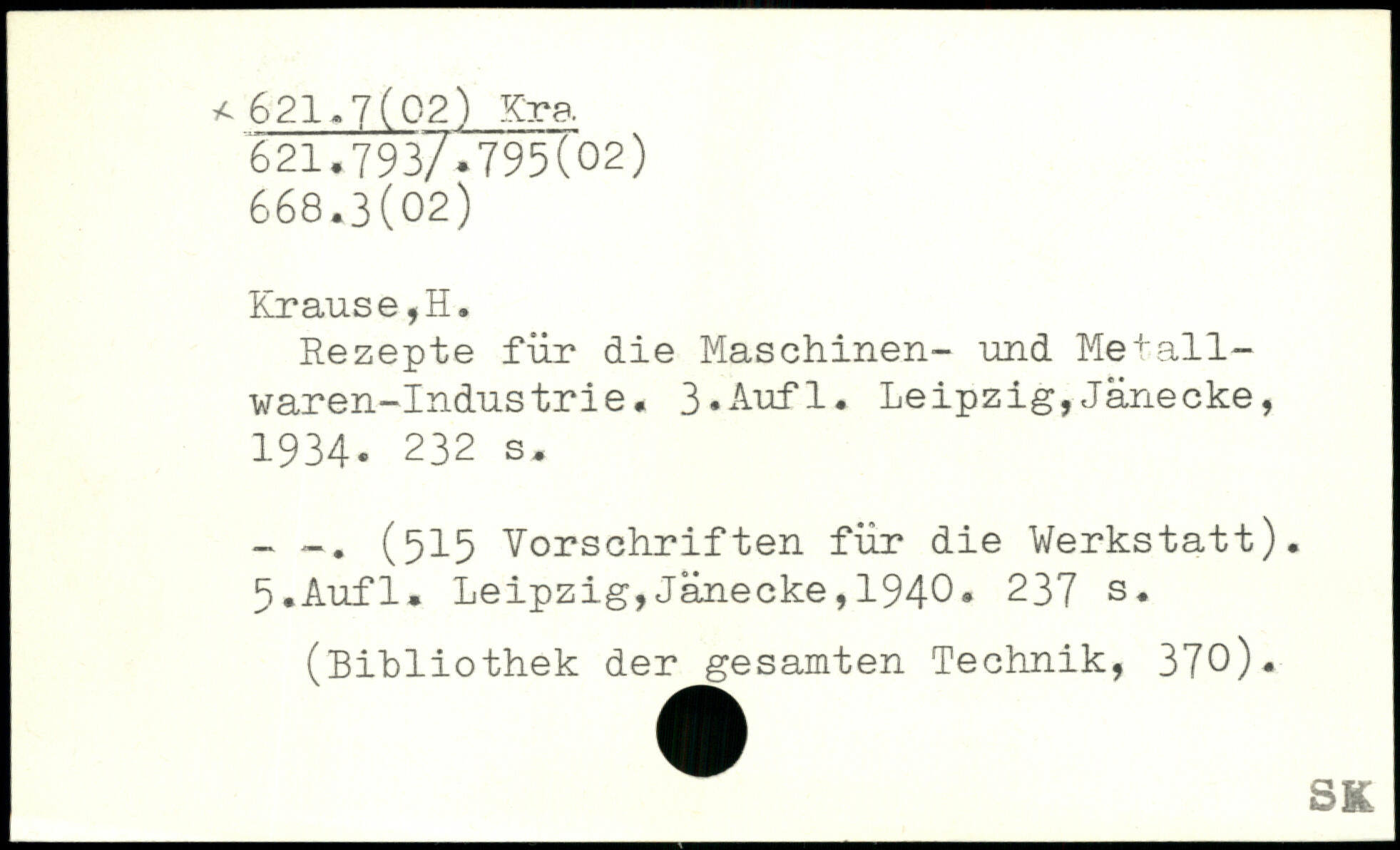 Rezepte für die Maschinen- und Metall-waren-Industrie.