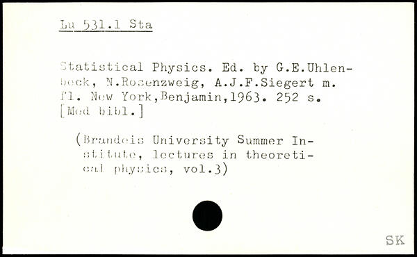 Statistical Physics. Ed. by G.E.Uhlen-bock, N.Rooenzweig, A.J.F.Siegert m. i'l.
