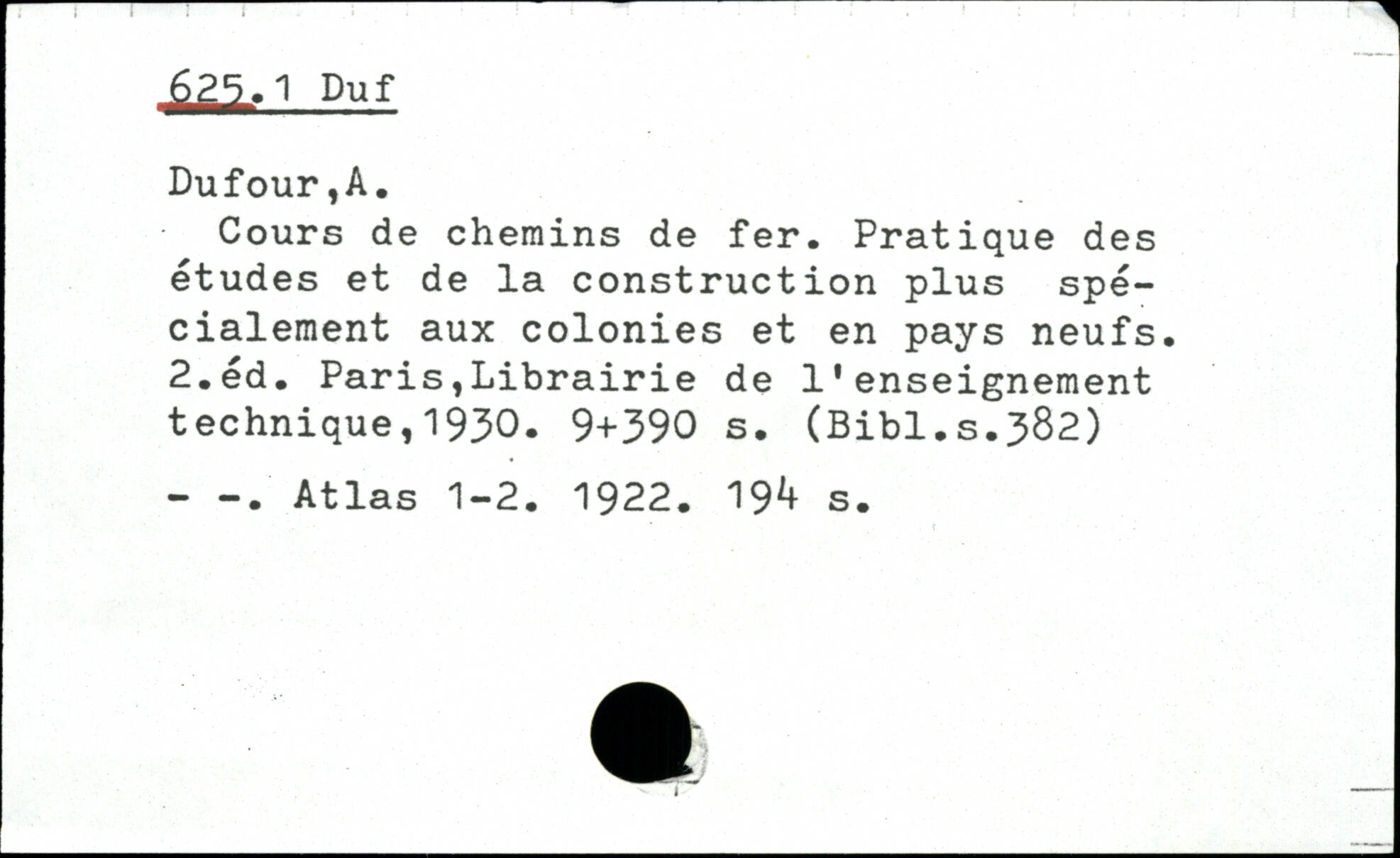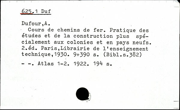 Cours de chemins de fer. Pratique des études et de la construction plus spécialement aux colonies et en pays neufs. 2.éd. Paris,Librairie de l'enseignement technique,1930.