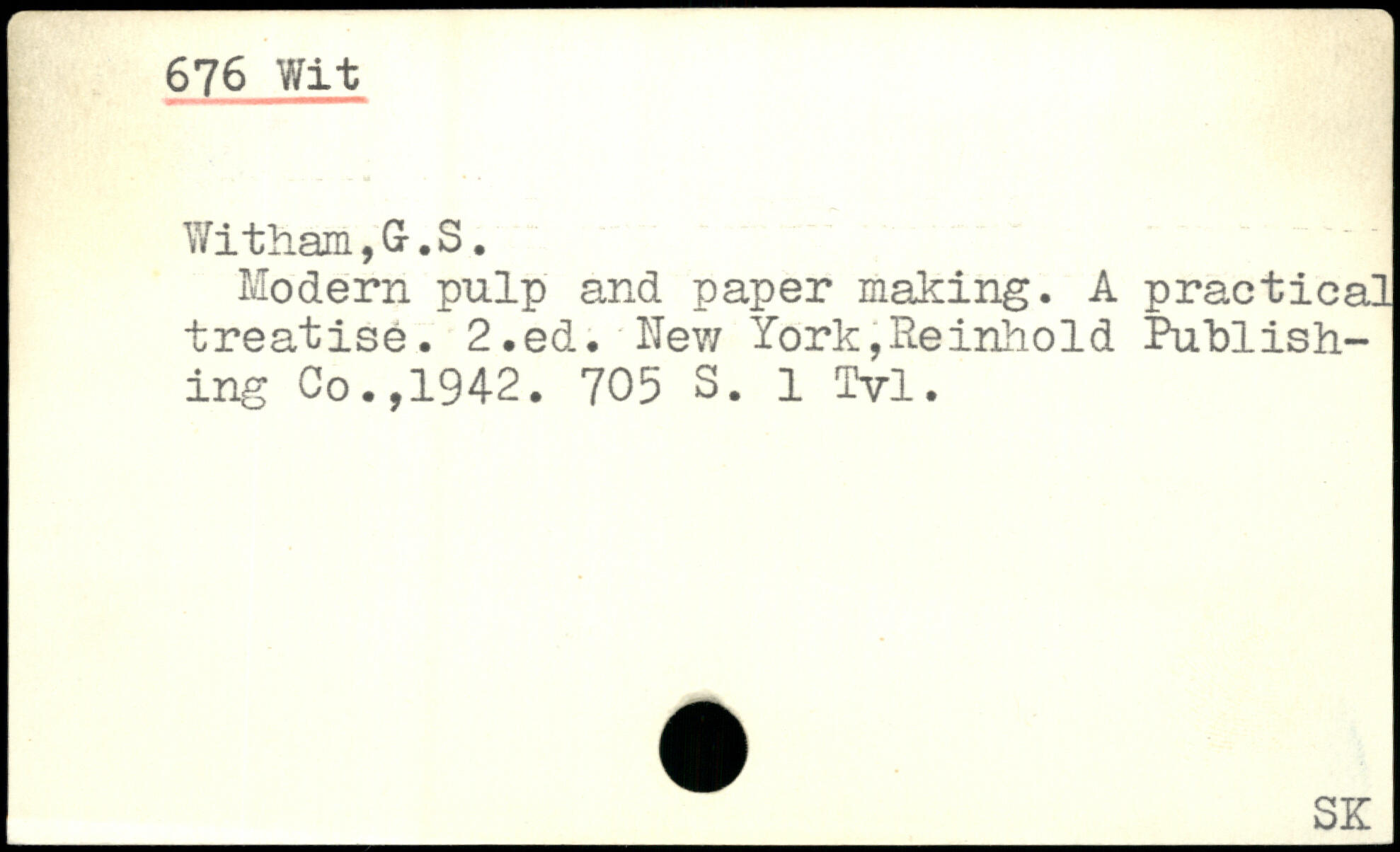 Y/itham, Gr. S. Modern pulp and paper making. A practical treatise.