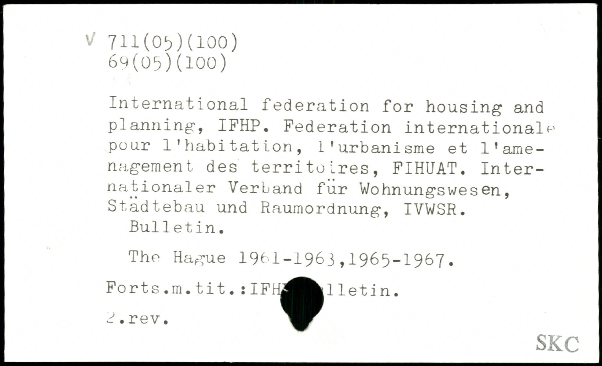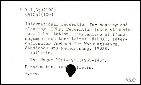 International fédération for housing and planning, IFHP. Federation internationale pour l'habitation, l’urbanisme et l'amenagement des territoires, FIHUAT. Internationaler Verband fur Wohnungswes en, Städtebau und Raumordnung, IVWSR. Bulletin.