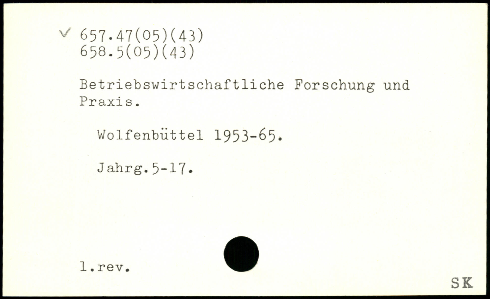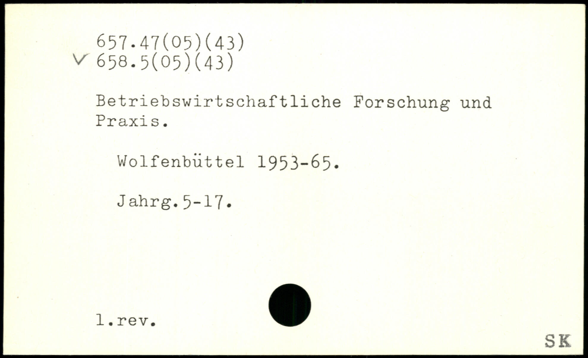 Betriebswirtschaftliche Forschung und Praxi s. Wolfenbüttel 1953-65. Jahrg.5-17.