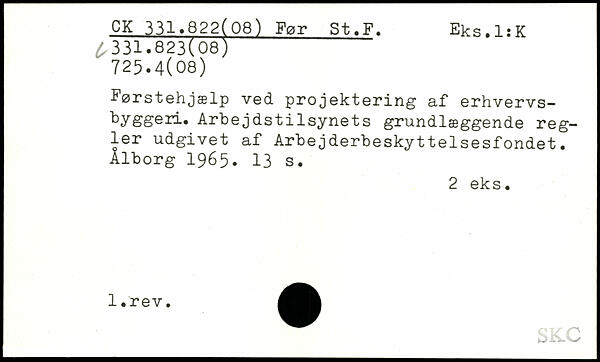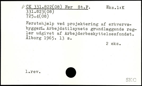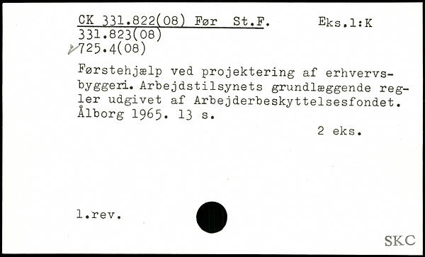 Førstehjælp ved projektering af erhvervsbyggeri, Arbejdstilsynets grundlæggende regler udgivet af Arbejderbeskyttelsesfondet. Alborg 1965.