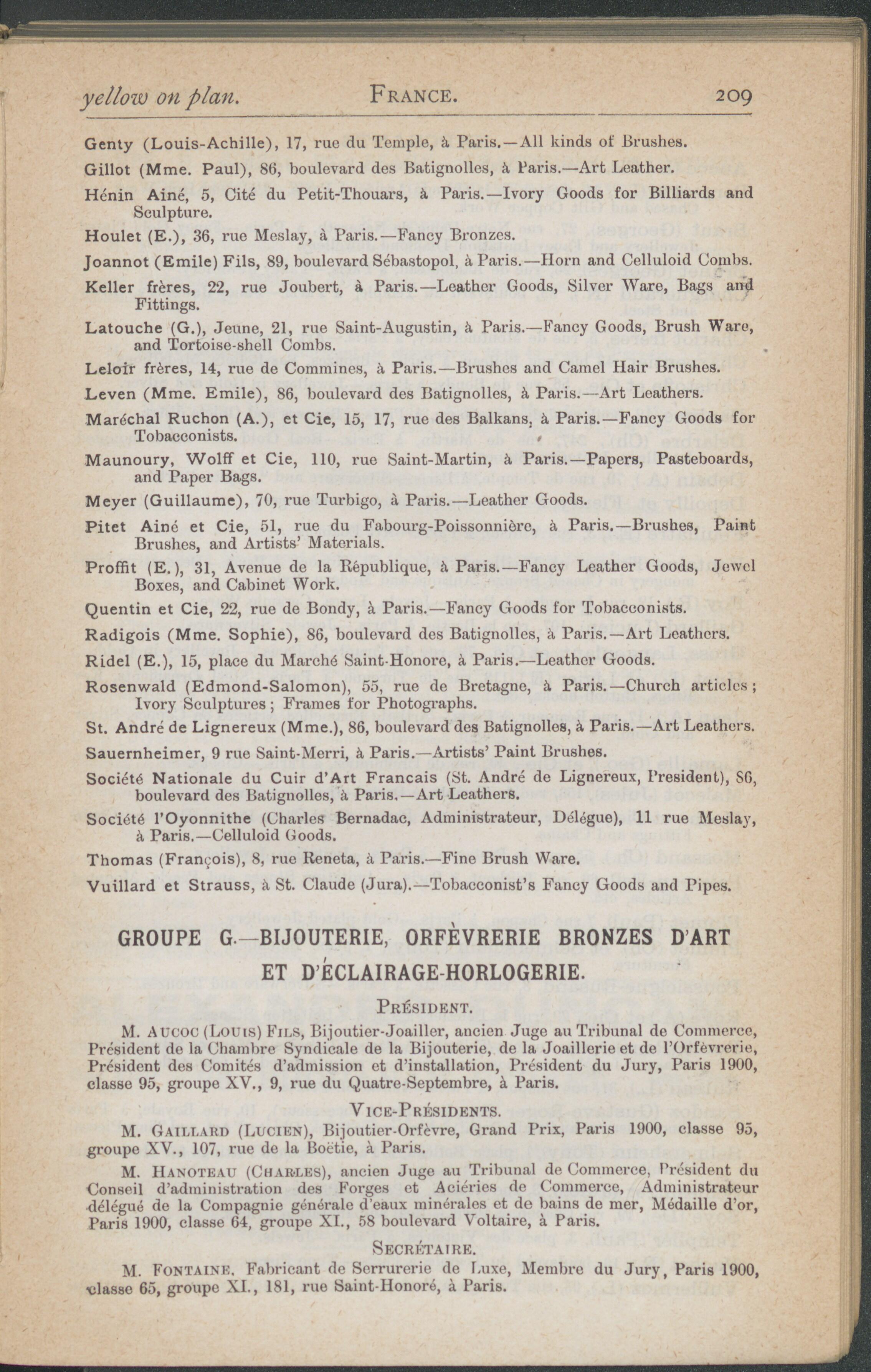 P. Fontaine, Fabricant de Serrurerie de Luxe, Membre du Jury, Paris 1900,