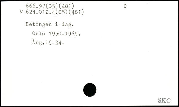 Betongen i dag. Oslo 1950-1969. Årg.15-34.