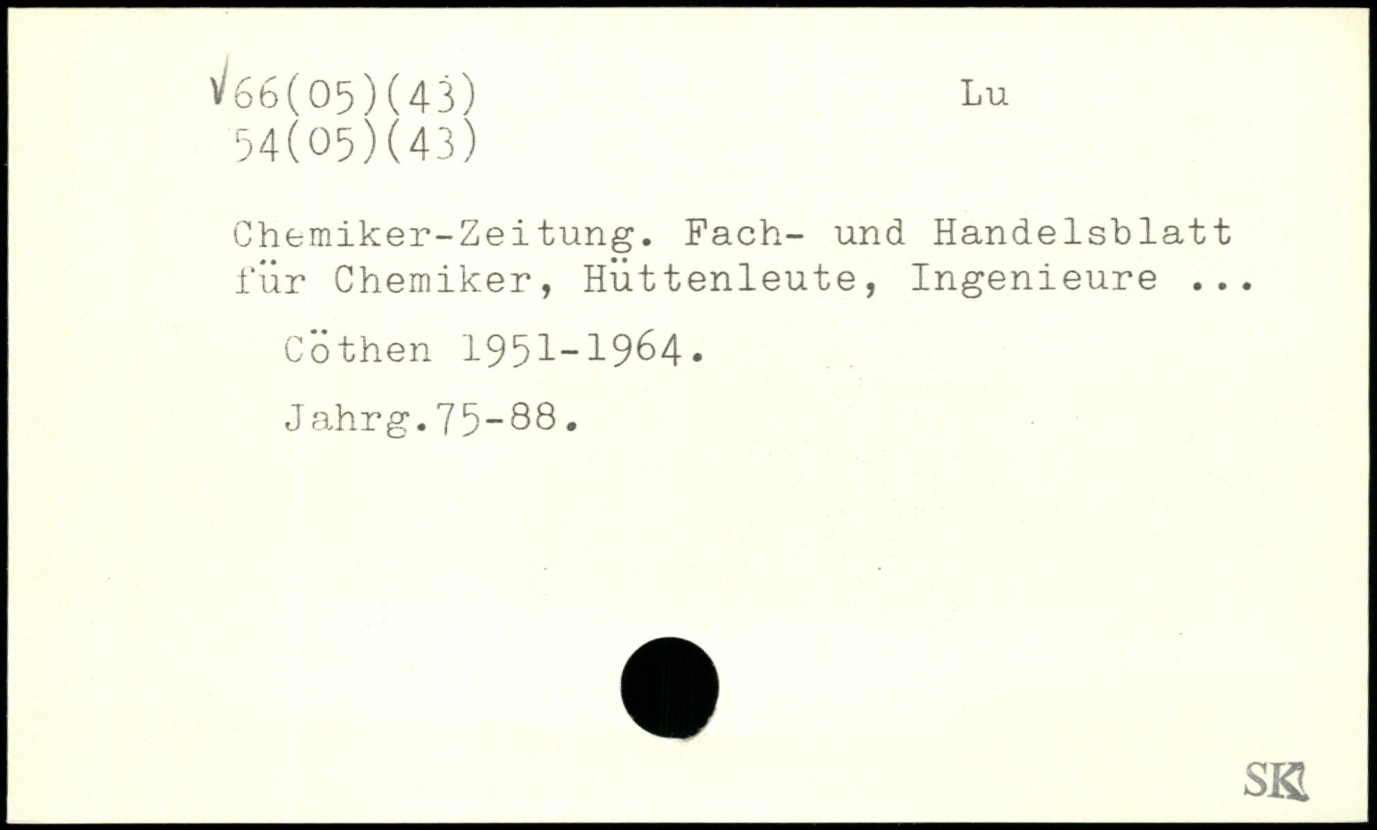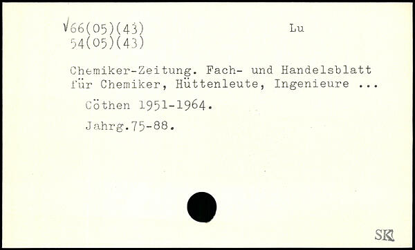Chemiker-Zeitung. Fach- und Handelsblatt für Chemiker, Hüttenleute, Ingenieure ... Göthen 1951-1964, J ahrg.75-88. sn