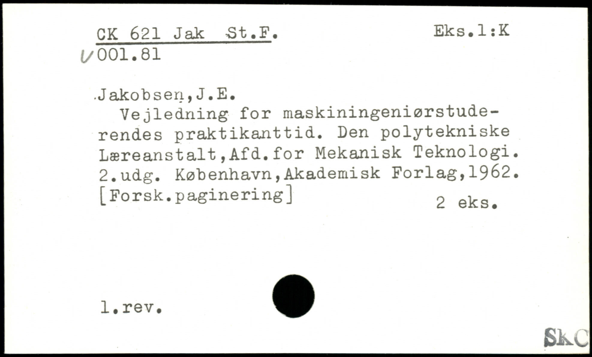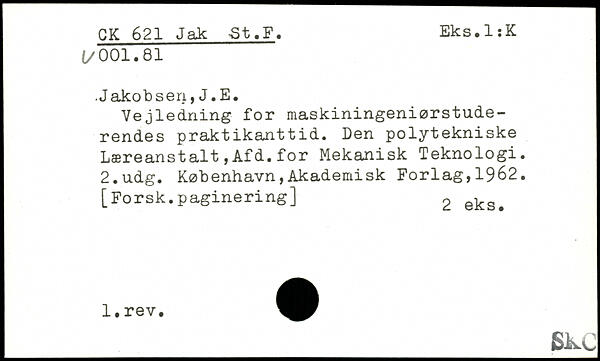 .Jakobsen, J.E. Vejledning for maskiningeniørstuderendes praktikanttid. Den polytekniske Læreanstalt,Afd.for Mekanisk Teknologi.