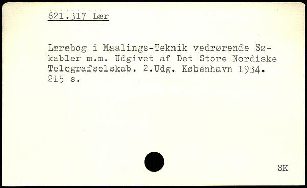 Lærebog i Maalings-Teknik vedrørende Søkabler m.m. Udgivet af Det Store Nordiske Telegrafselskab. 2.Udg.