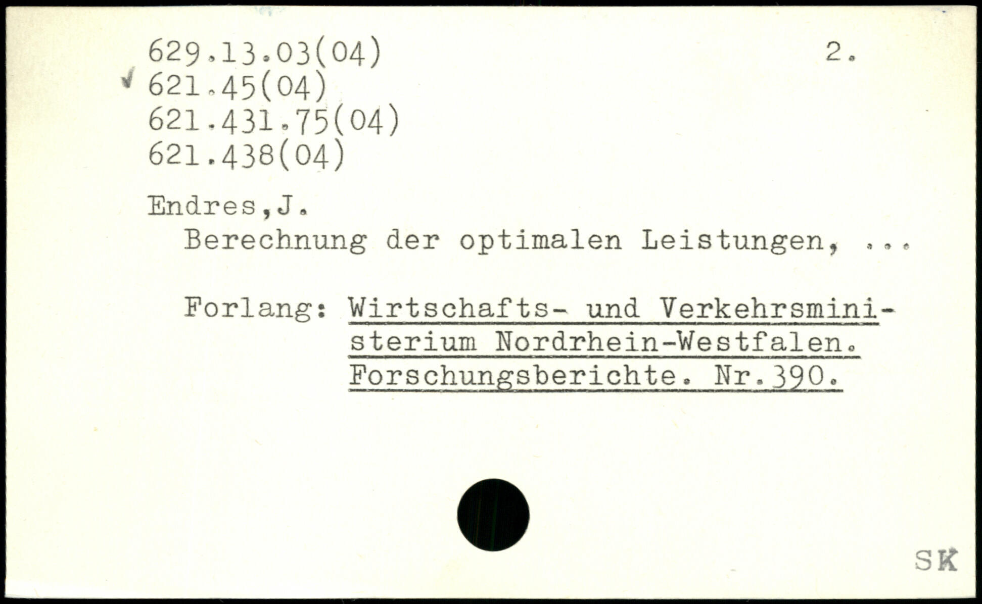 Berechnung der optimalen Leistungen, ,,. Forlang: Virtschafts- und Verkehrsmini-sterium Nordrhein-Westfalen,, Eorschungsberichte. Nr.390.