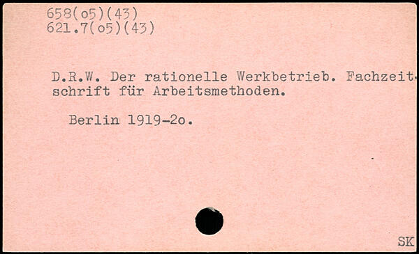 D.R.W. Der rationelle Werkbetrieb. Fachzeitschrift für Arbeitsmethoden.