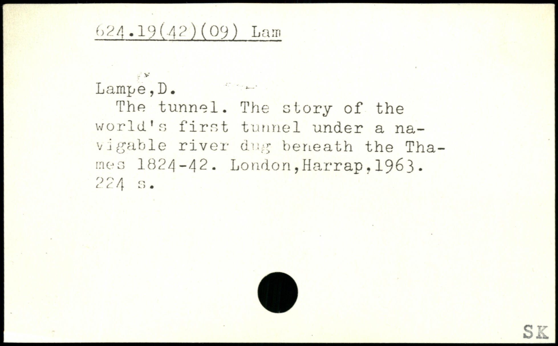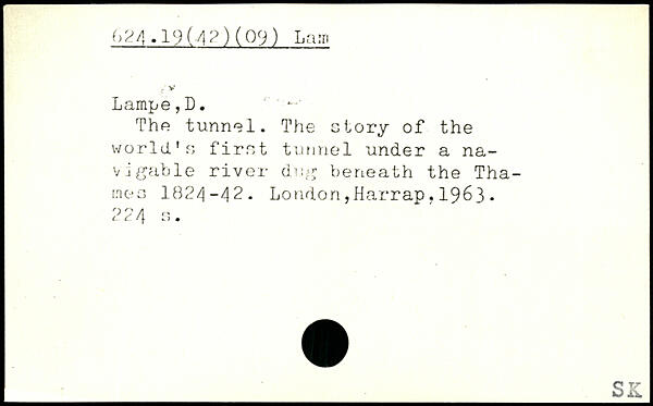The tunnel. The story of the world's first tunnel under a navigable river dug beneath the Thames 1824-42. London,Harrap.1963.